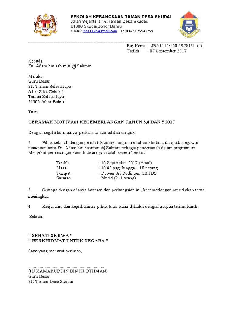 Surat Jemputan Penceramah Motivasi Tahun 3 5 Adam Pdf
